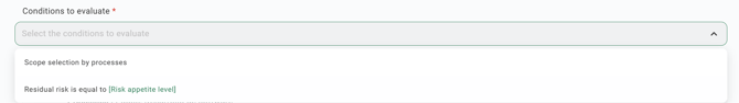 If you select the condition that residual risk equals one of the available options, it will set the conditions for a specific entity.