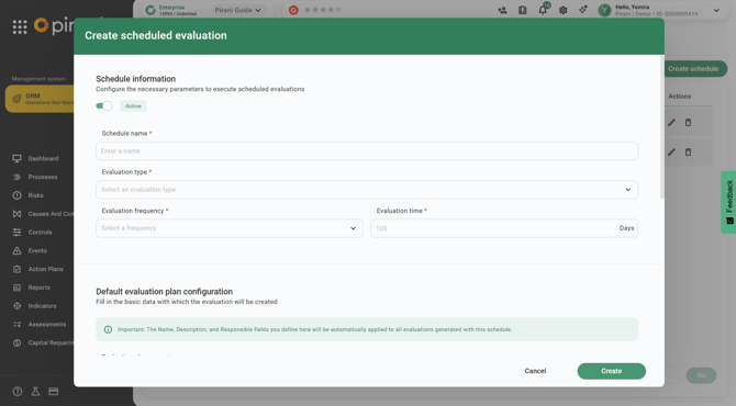 The Automatic Assessment Scheduling module enables the automatic creation of risk or control assessment plans, eliminating the need for manual plan setup.