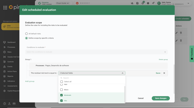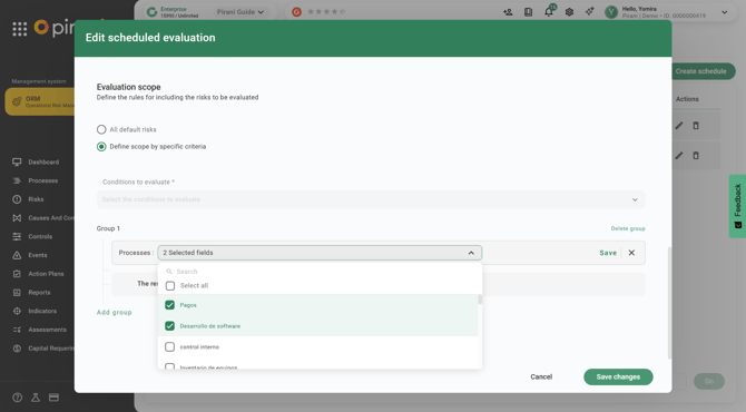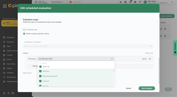 If you want to create an assessment plan with only specific risks, select only the processes to which those risks are associated and click “Save”.