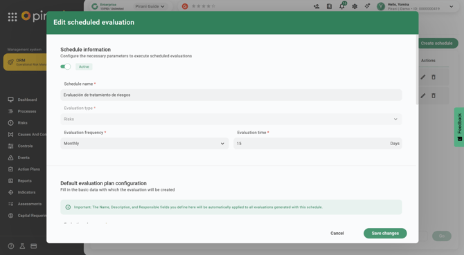 Activate the schedule using the toggle button to enable automatic generation of assessment plans.
