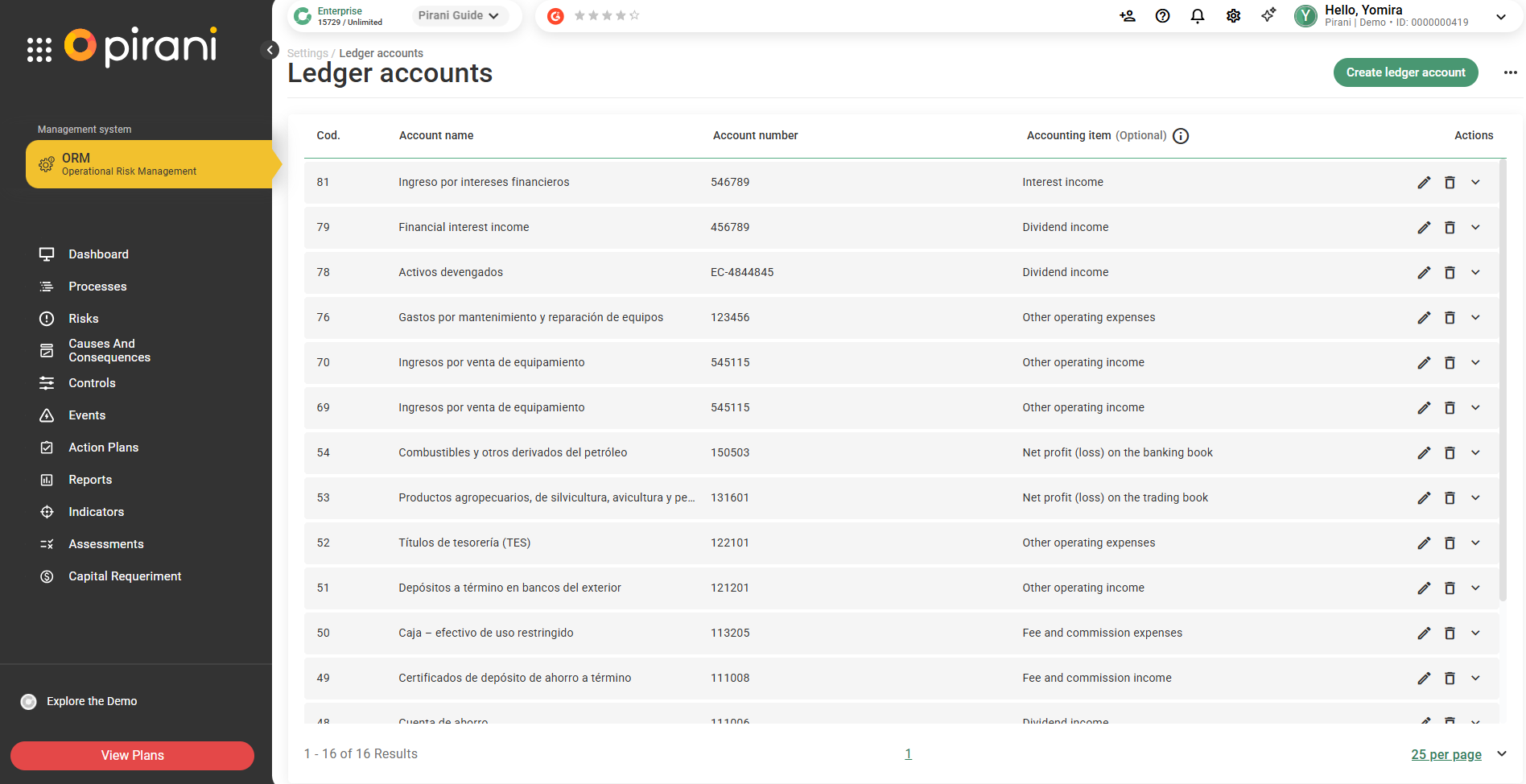 To edit any account you only need to click on the pencil icon and in case you want to delete an account you only need to click on the trash can icon.