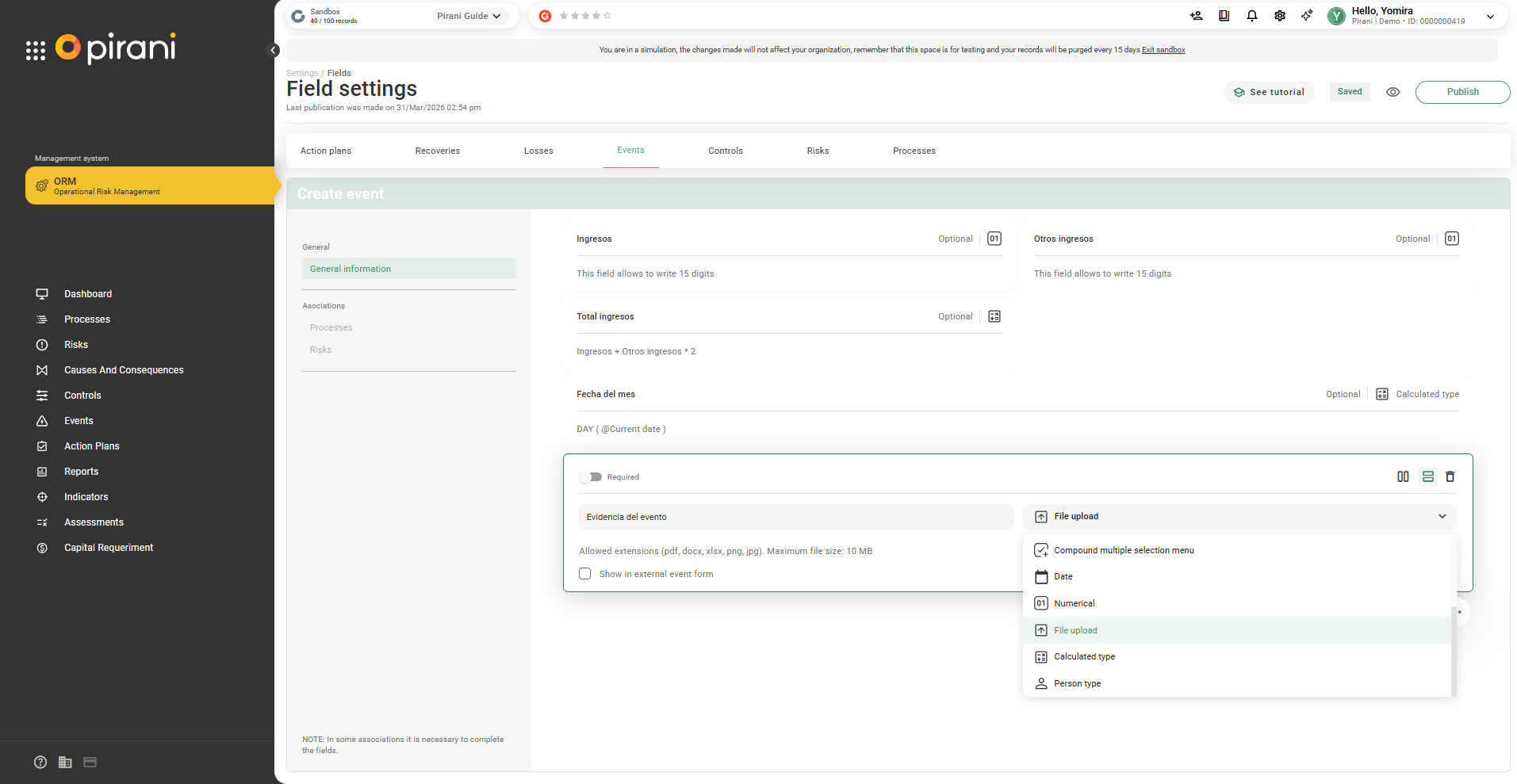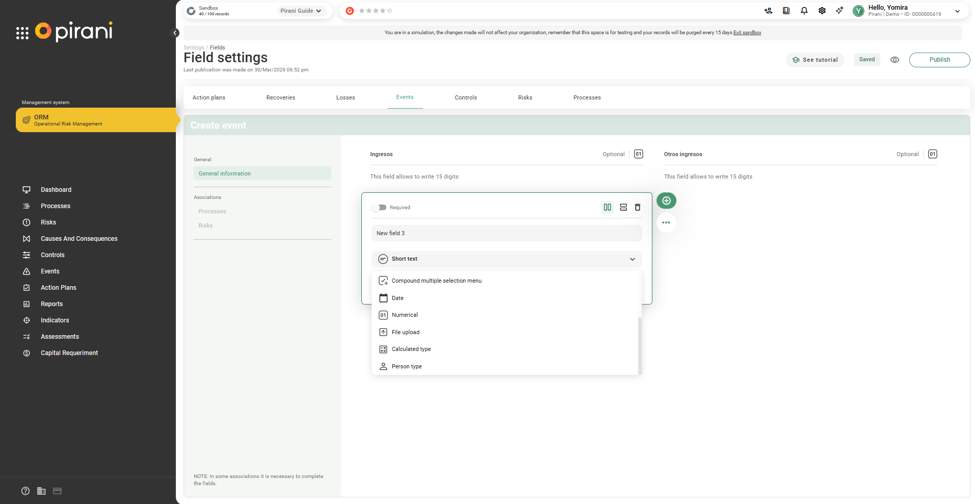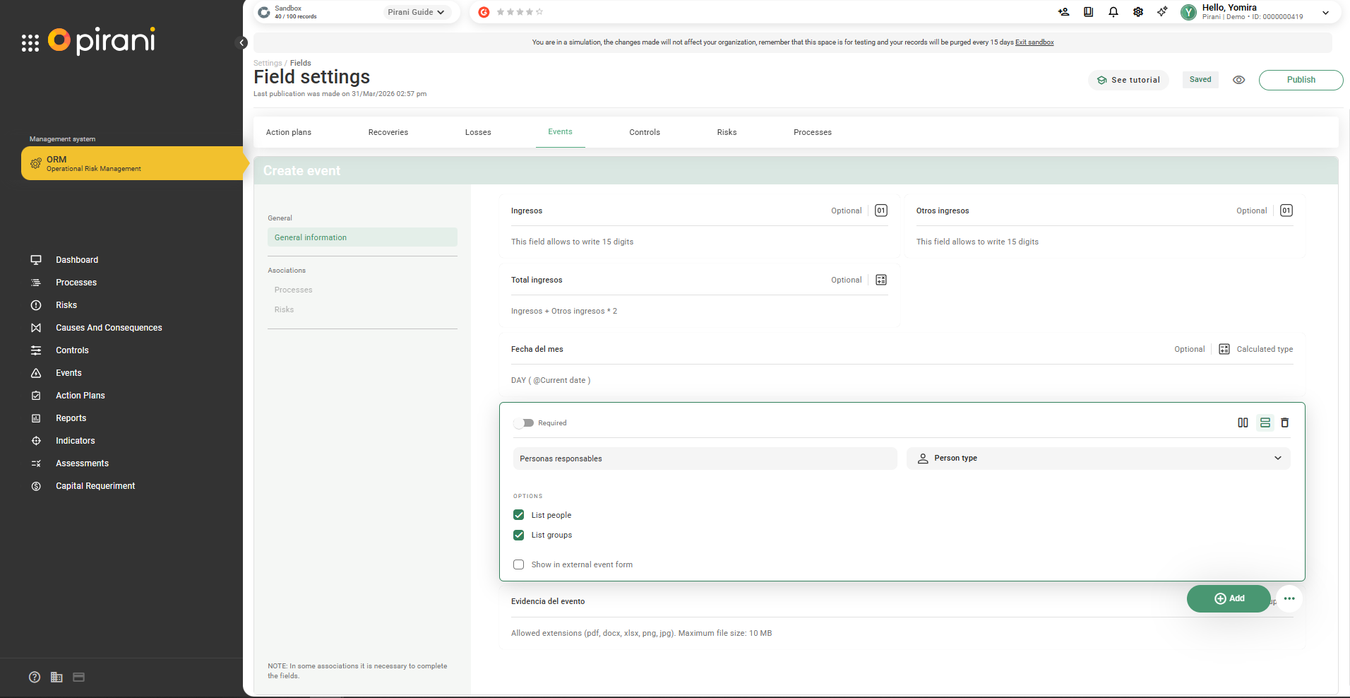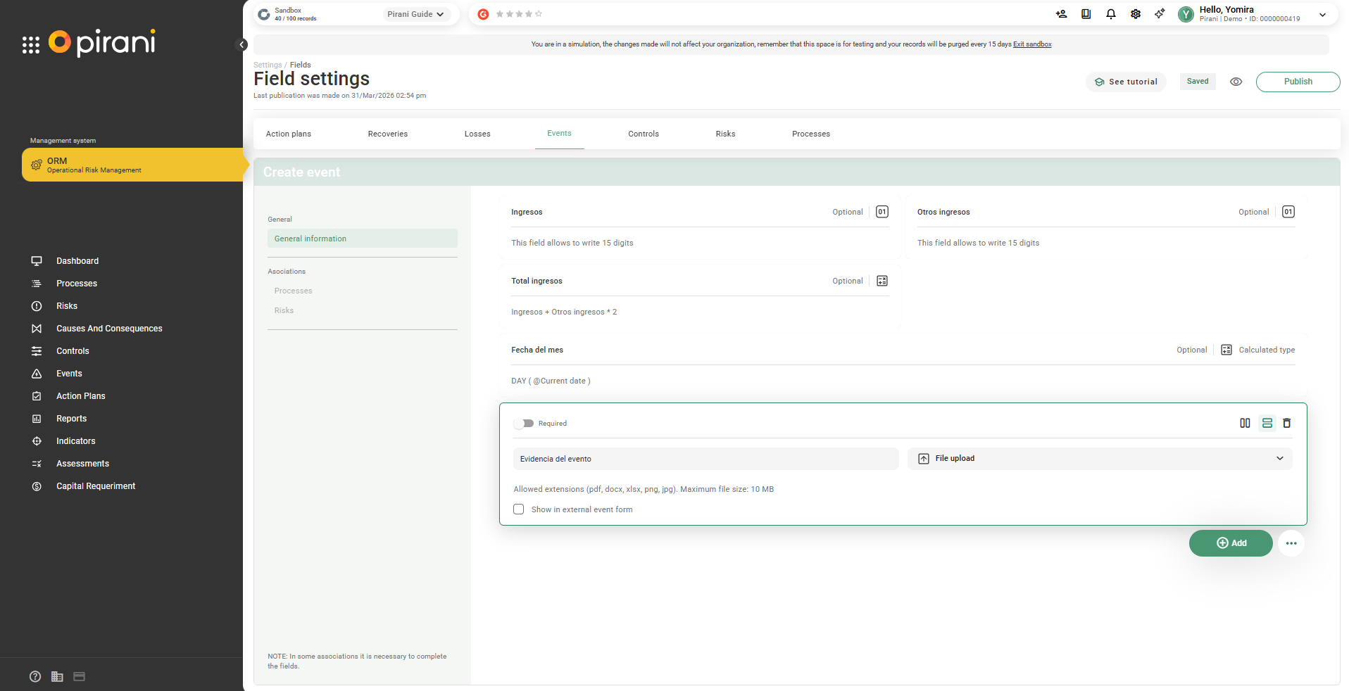 This functionality is first implemented in Events and will be gradually extended to Clients and Counterparties.