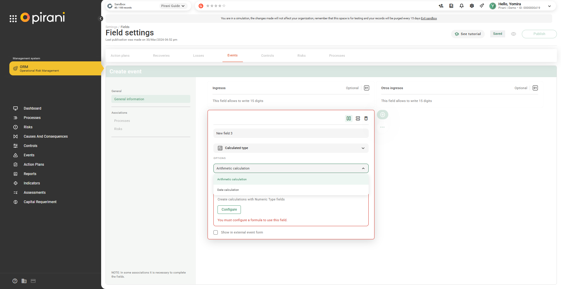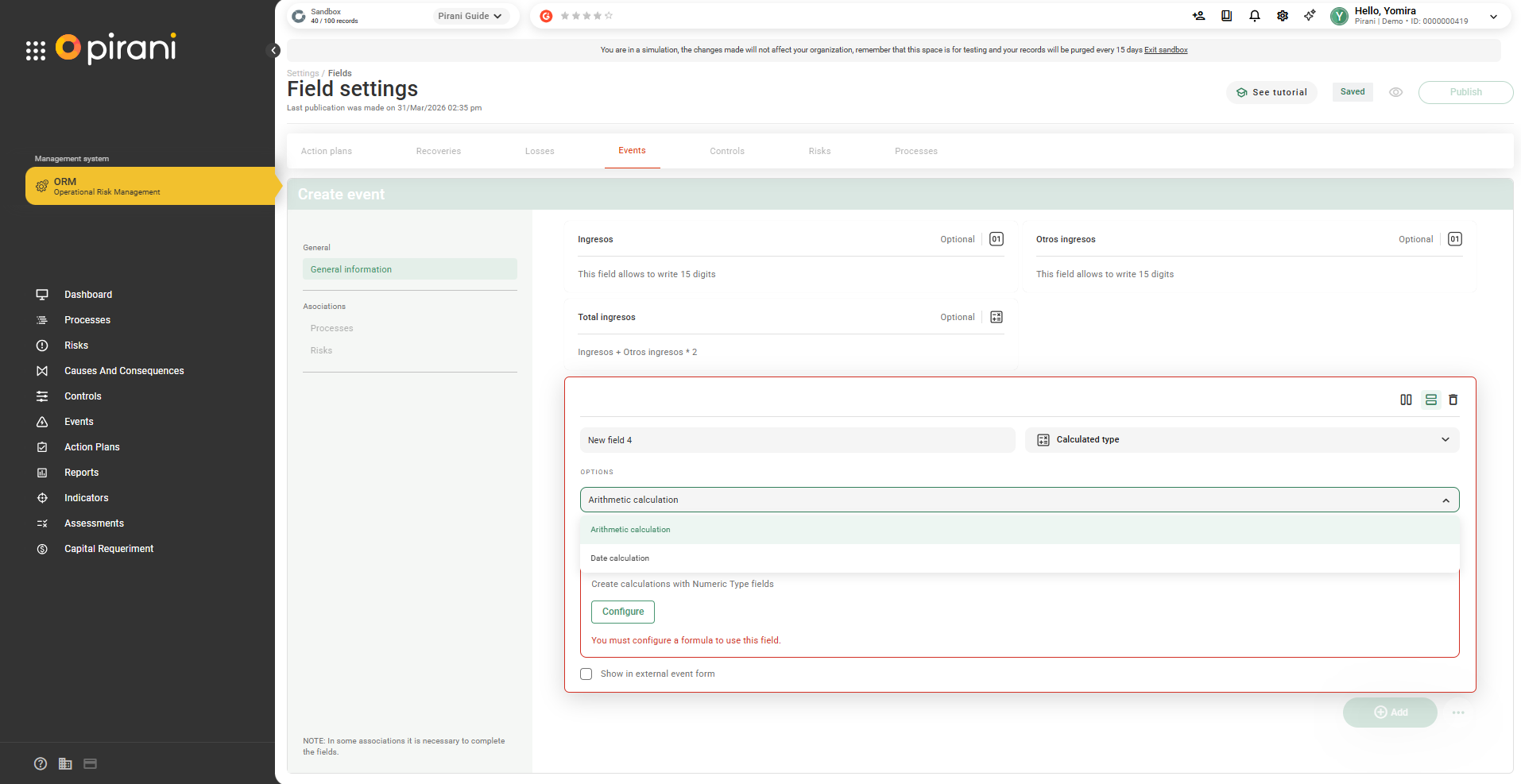 Available types of calculated fields: