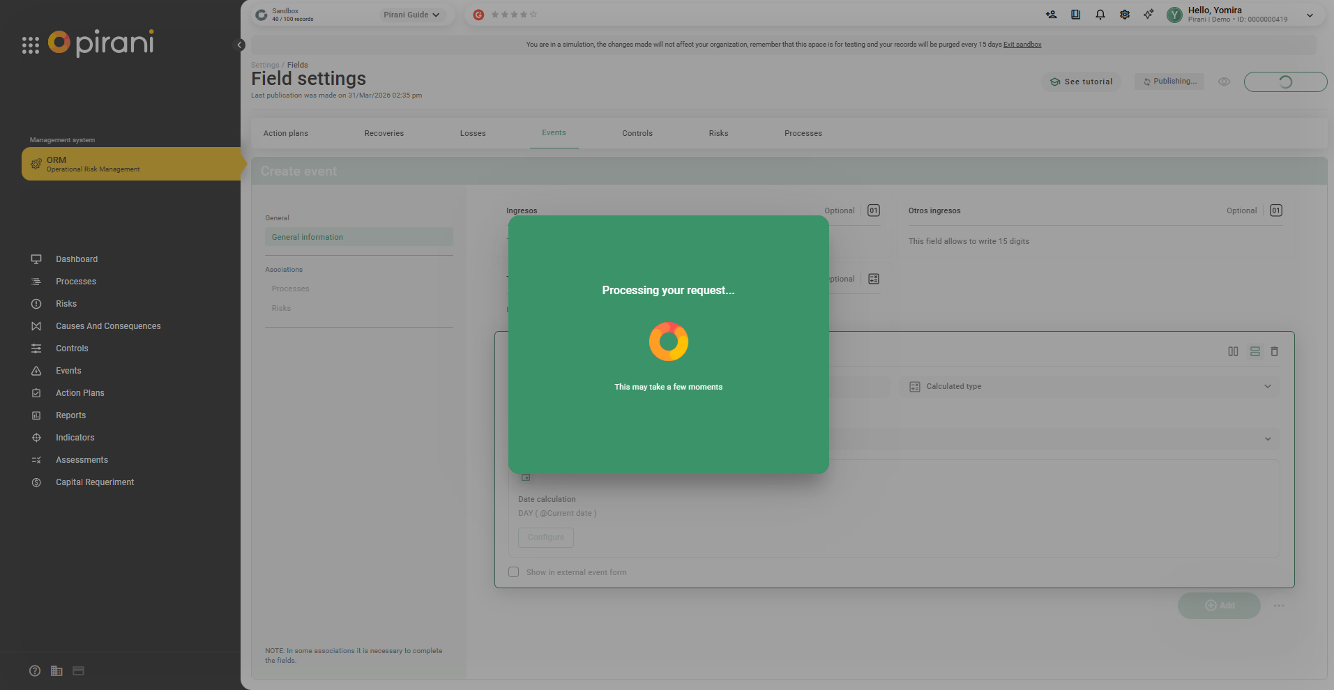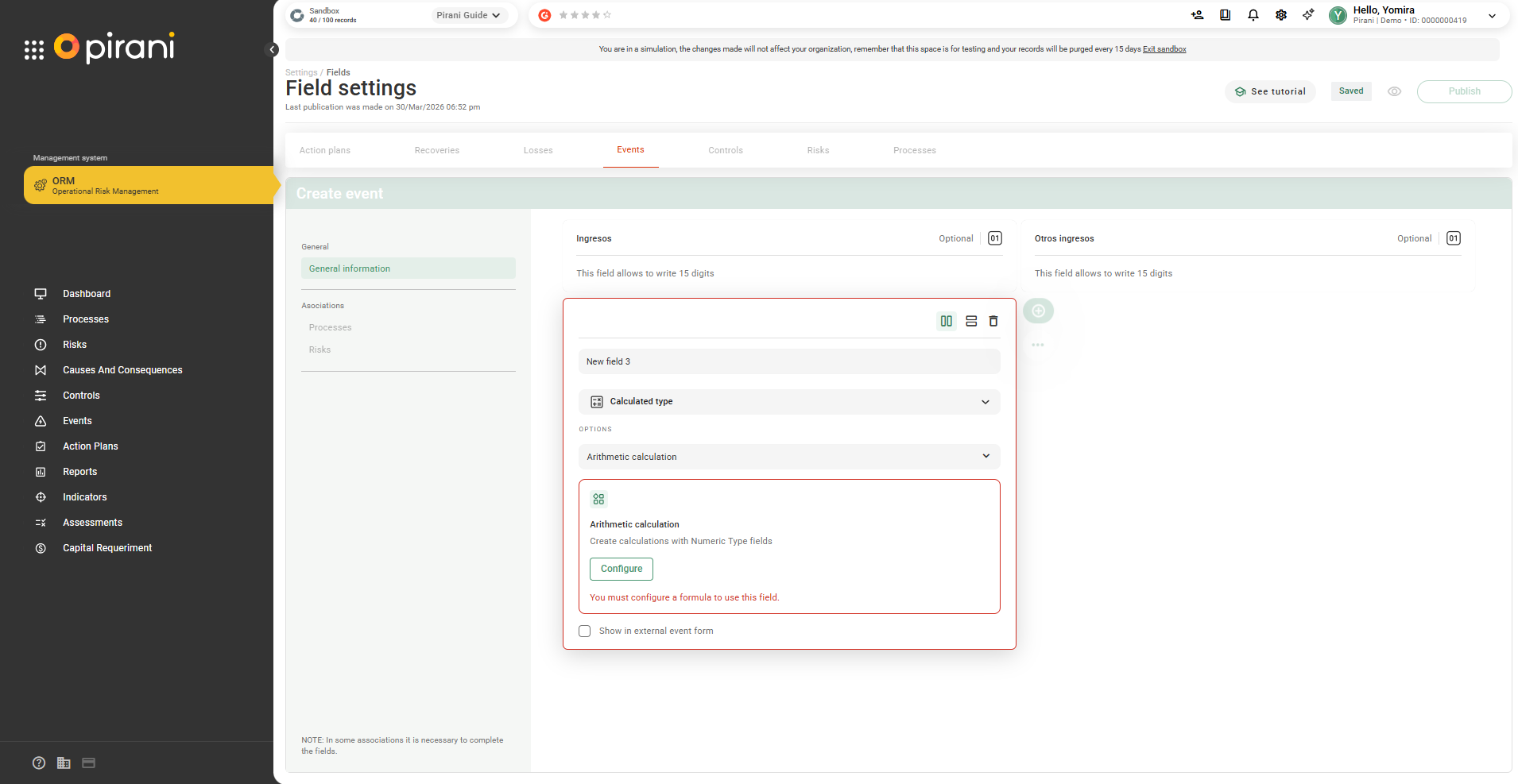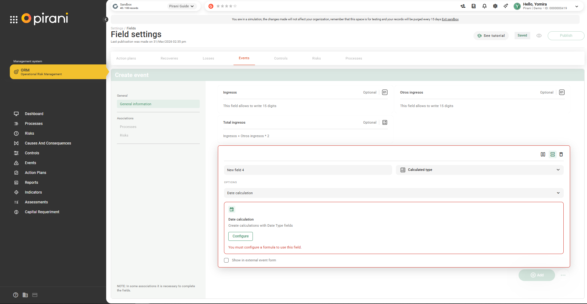 Step 6: Go to the corresponding module (in this case, Events) to view the assigned field.