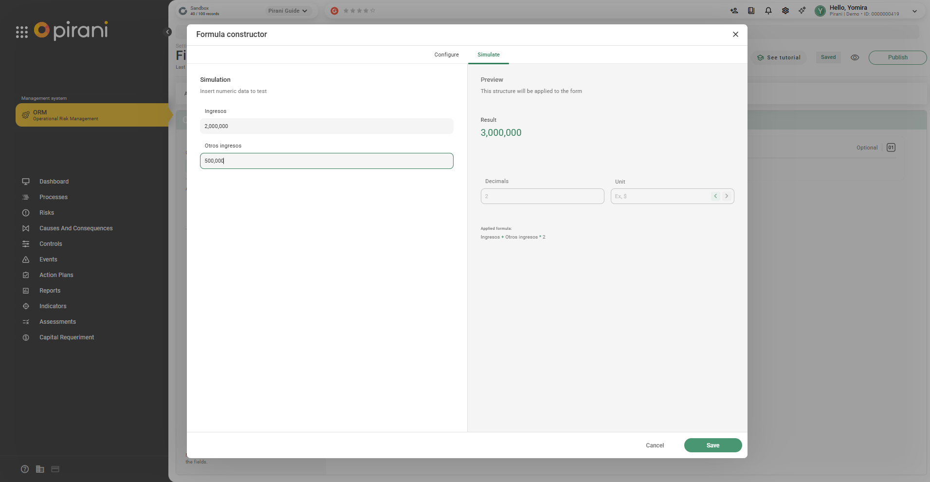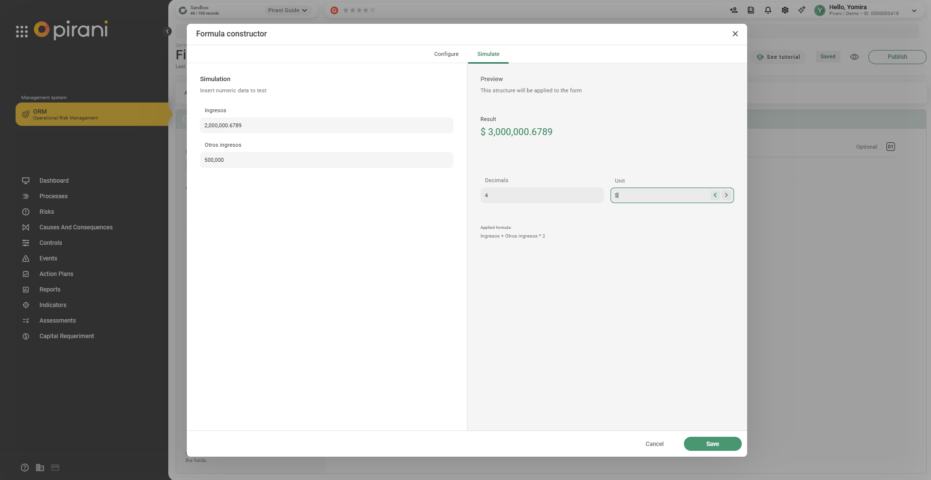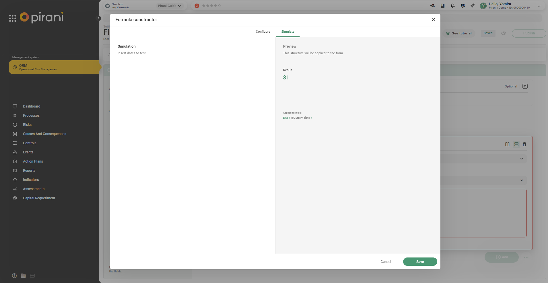Step 3: Use the Simulate tab to validate the calculation and click Save.