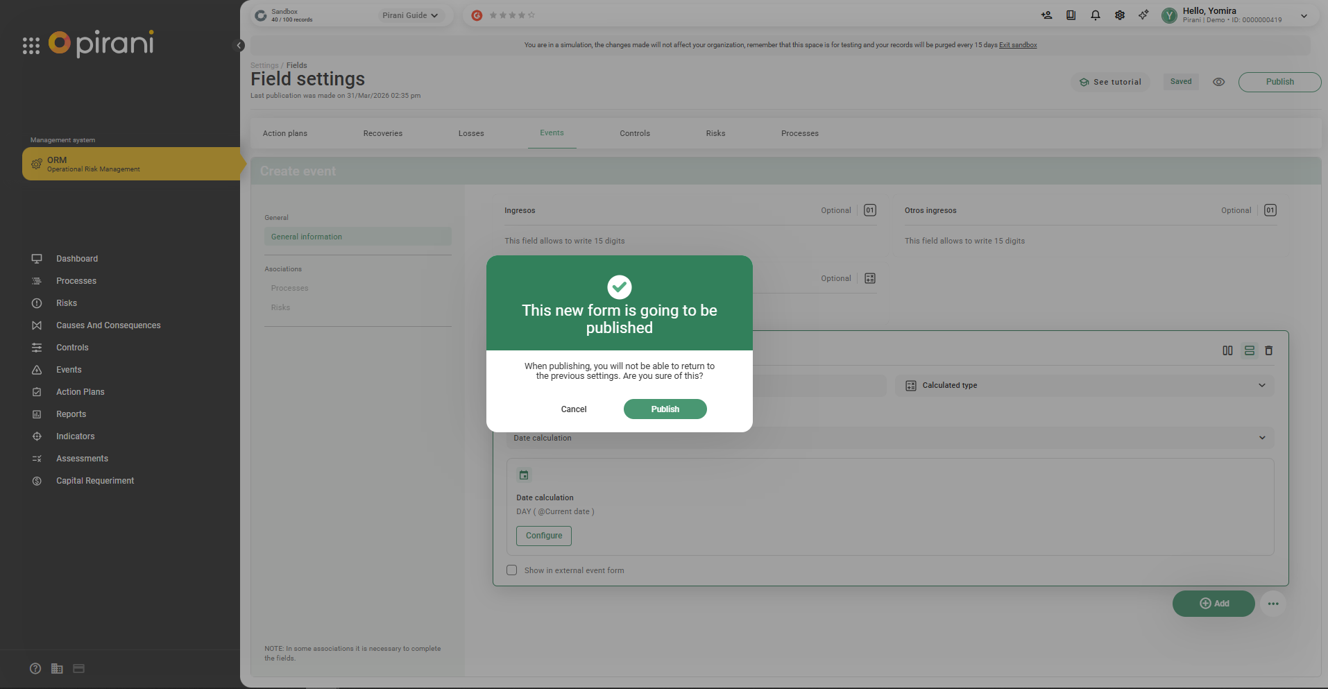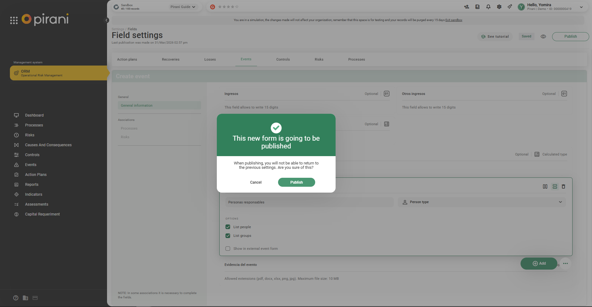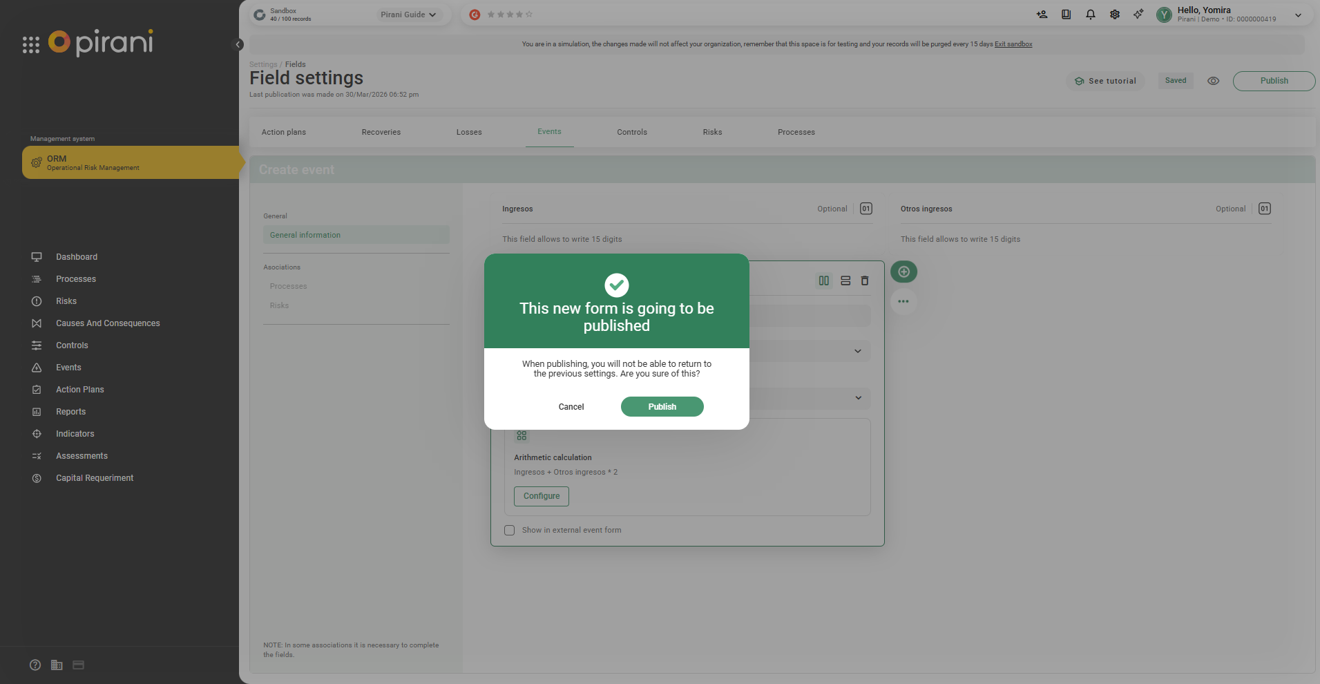 Step 7: Then click Publish so that it appears in the fields.