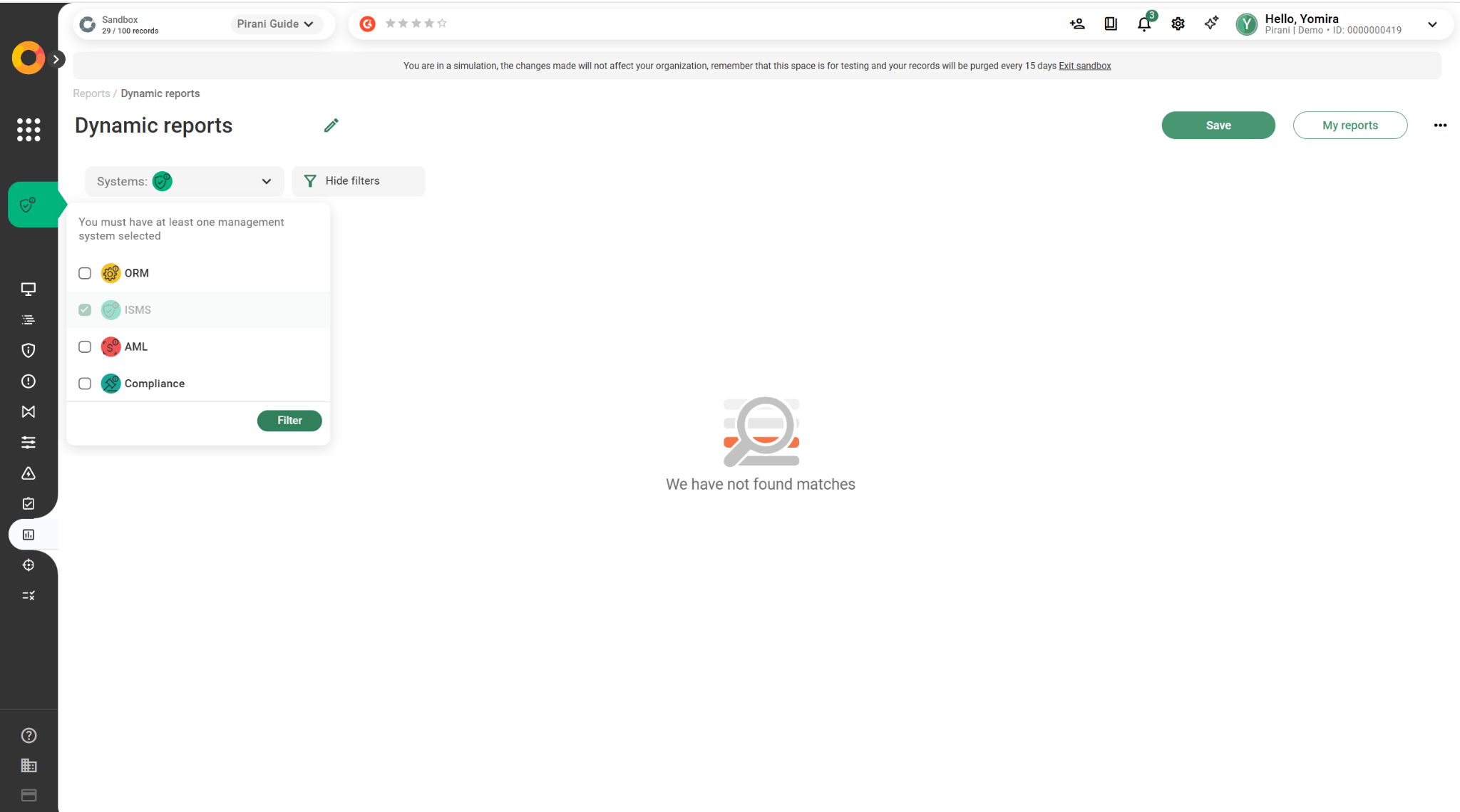 Since this module is cross-functional, you can select one or several management systems to generate your reports.