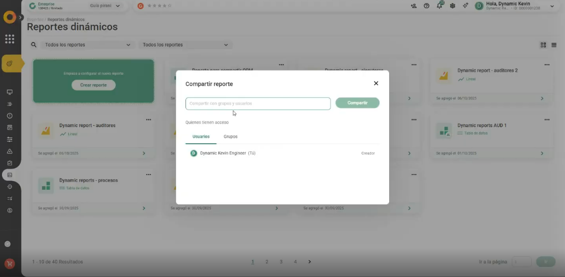 The dynamic reports allow you to create reports with specific characteristics, according to your requirements, so that you can easily access the information.