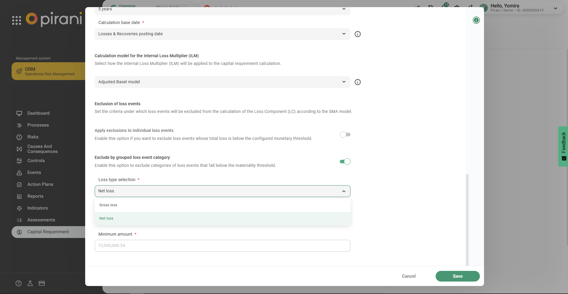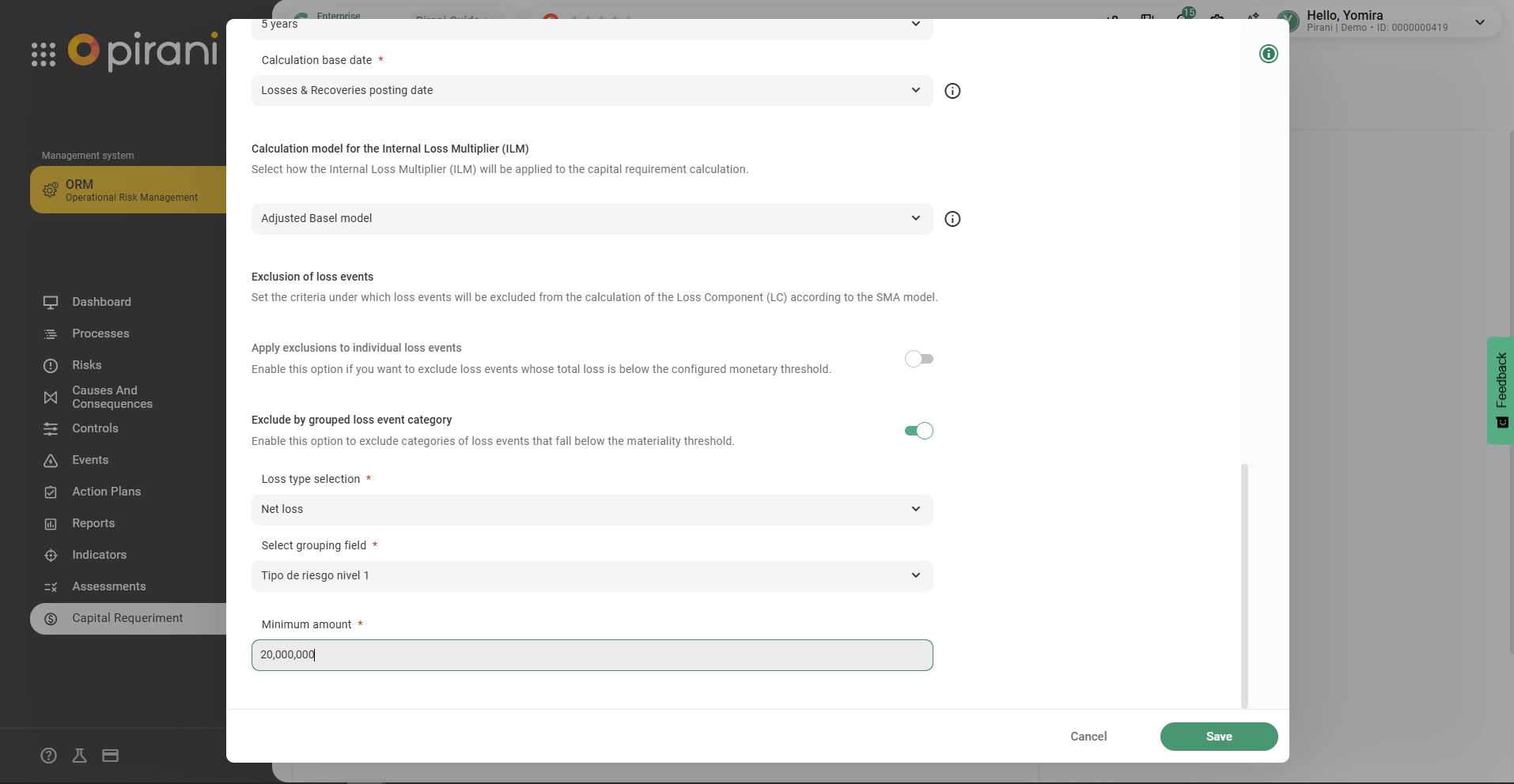 The loss component allows you to incorporate your organization’s actual data to calculate the Loss Indicator (ILM). A certified ILM can reduce the capital requirement, but only if the information used is reliable, audited, and compliant with regulatory standards.