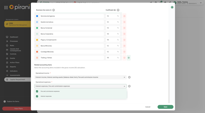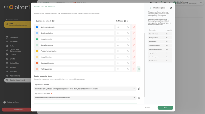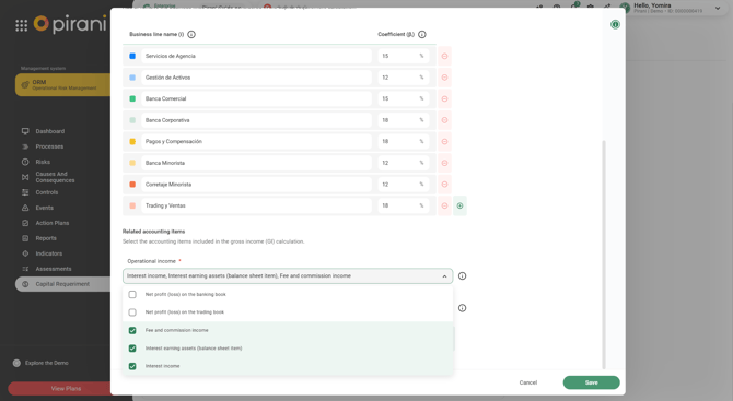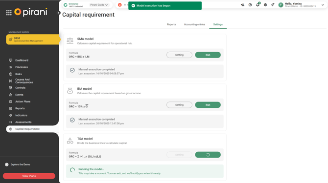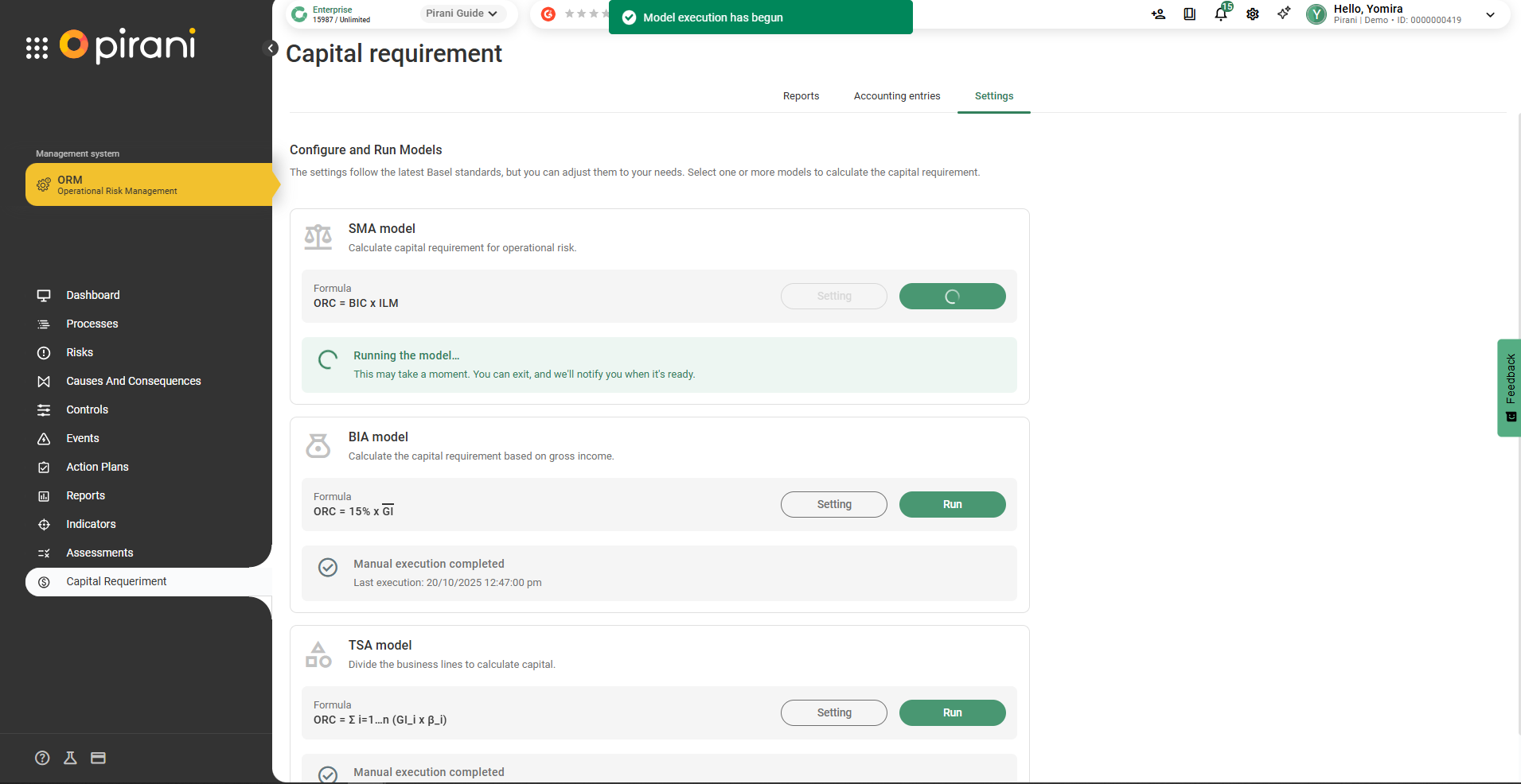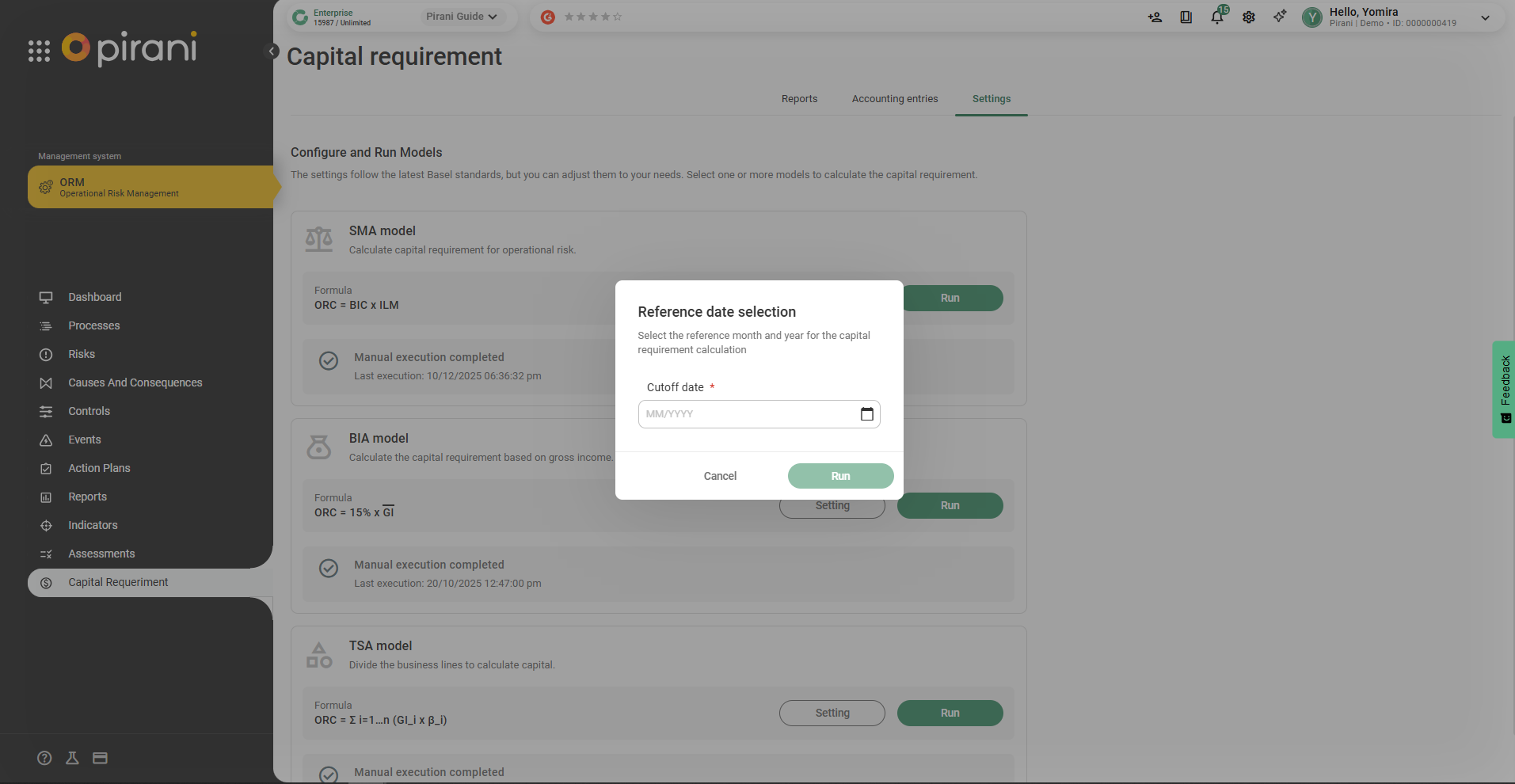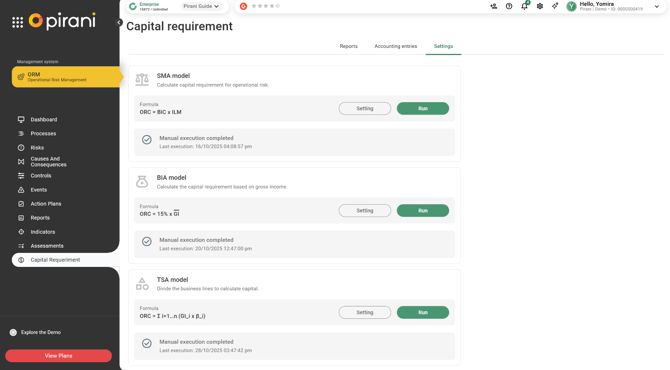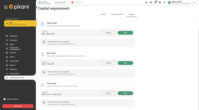 When you access “Capital Requirement” in the “Settings” tab, you will be able to select and configure the model or models you wish to use.