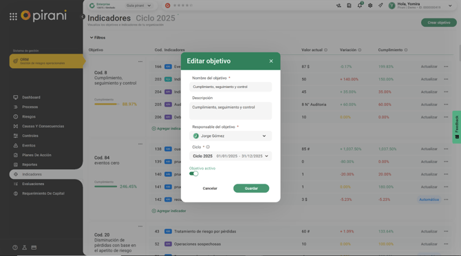 Con Pirani gestiona tus indicadores con sus respectivos objetivos. Podrás tener indicadores transversales KCI, KRI y KPI para todos los sistemas de gestión, o un propio listado de indicadores por cada sistema.
