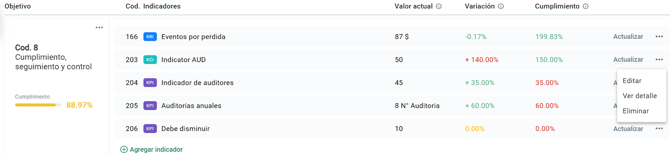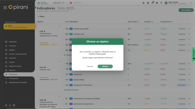 Eliminar: en caso consideres que ya no es necesario tener el indicador dentro del objetivo