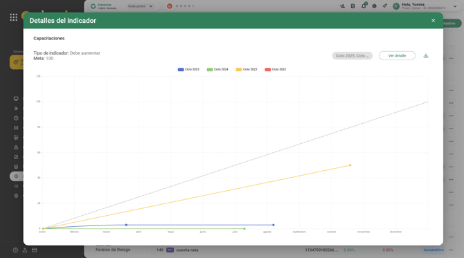 Ciclo: el rango de tiempo anual donde se presenta la gestión del objetivo, esto nos ayuda a compararlo con un mes en específico de un año anterior.