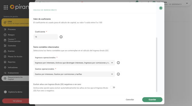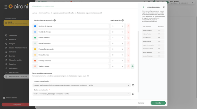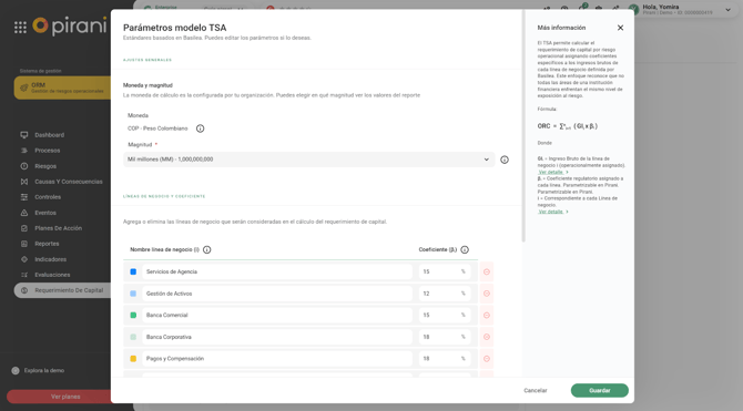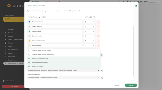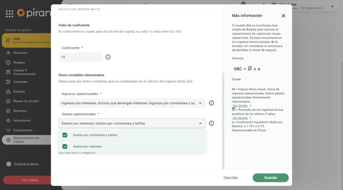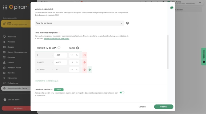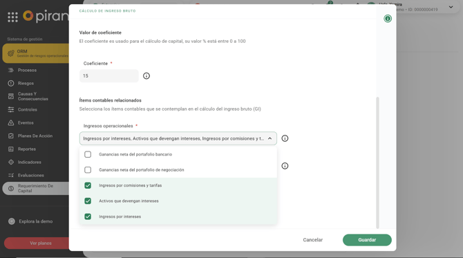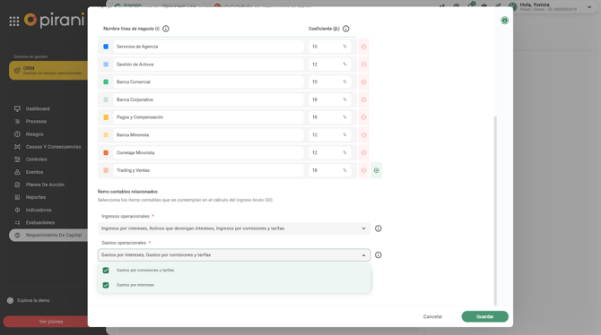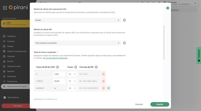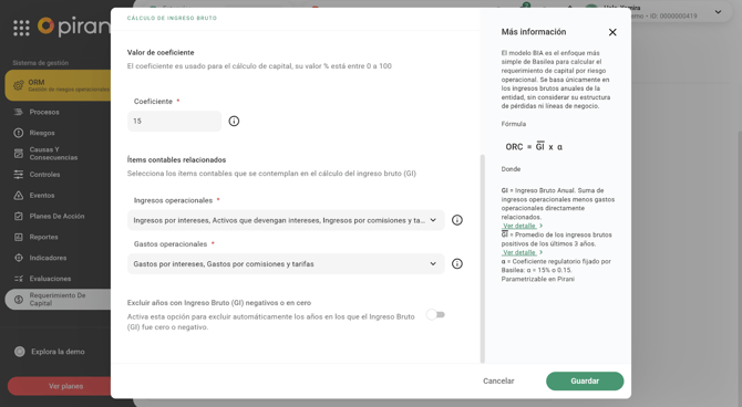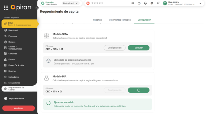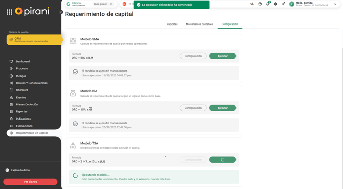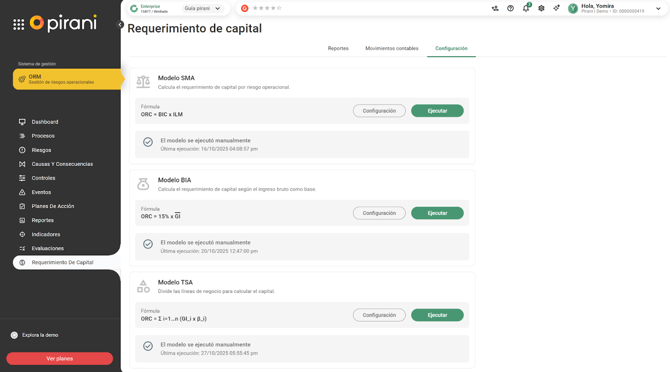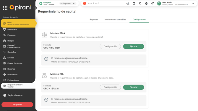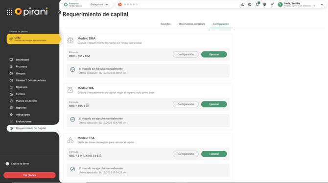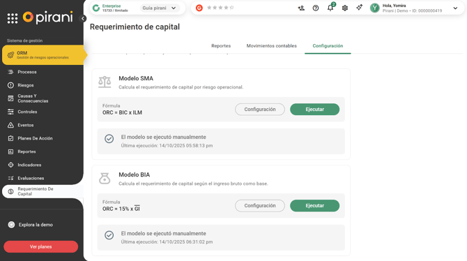 Cuando ingreses a “Requerimiento de capital” en la pestaña de “Configuración”, configura el modelo o los modelos que vas a usar.