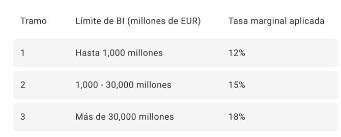 Por tasa fija: Aplica un único porcentaje al valor total del BI, independientemente de su tamaño.