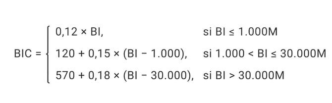Si el BI está en alguna de las tres opciones se multiplica por el porcentaje (%) como aparece en el cuadro lo que resulta siendo el BIC.