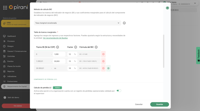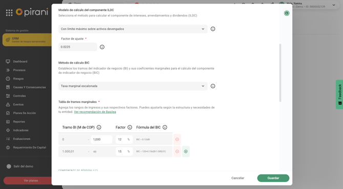 Pirani cuenta con dos métodos de cálculo para BIC (Business Indicator Component)