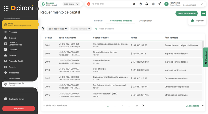 Además, Pirani facilita a las empresas el proceso de certificación de sus eventos de riesgo al garantizar que se cumplan los controles y requisitos mínimos necesarios para una correcta validación.