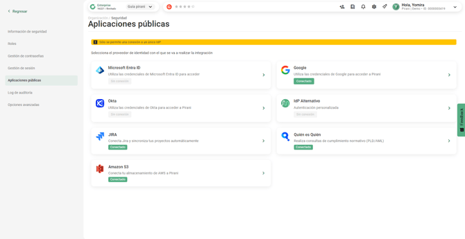 Estos datos son entregados por el equipo de tecnología y son necesarios para completar la configuración en Pirani.