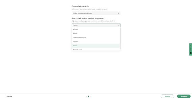Aquí seleccionamos la entidad que queremos que los registros se carguen automáticamente. (Por ejemplo: eventos)