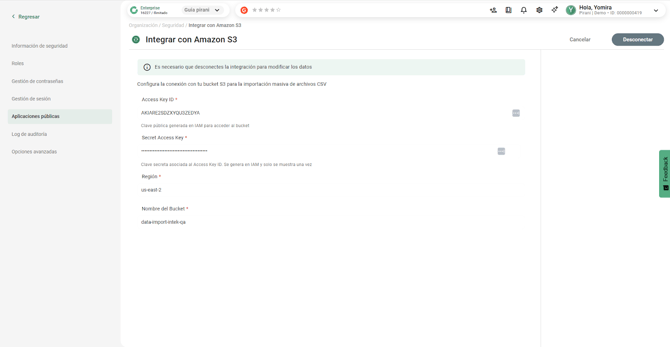 Una vez creado el bucket, el equipo de tecnología debe proporcionar los siguientes datos para realizar la conexión: