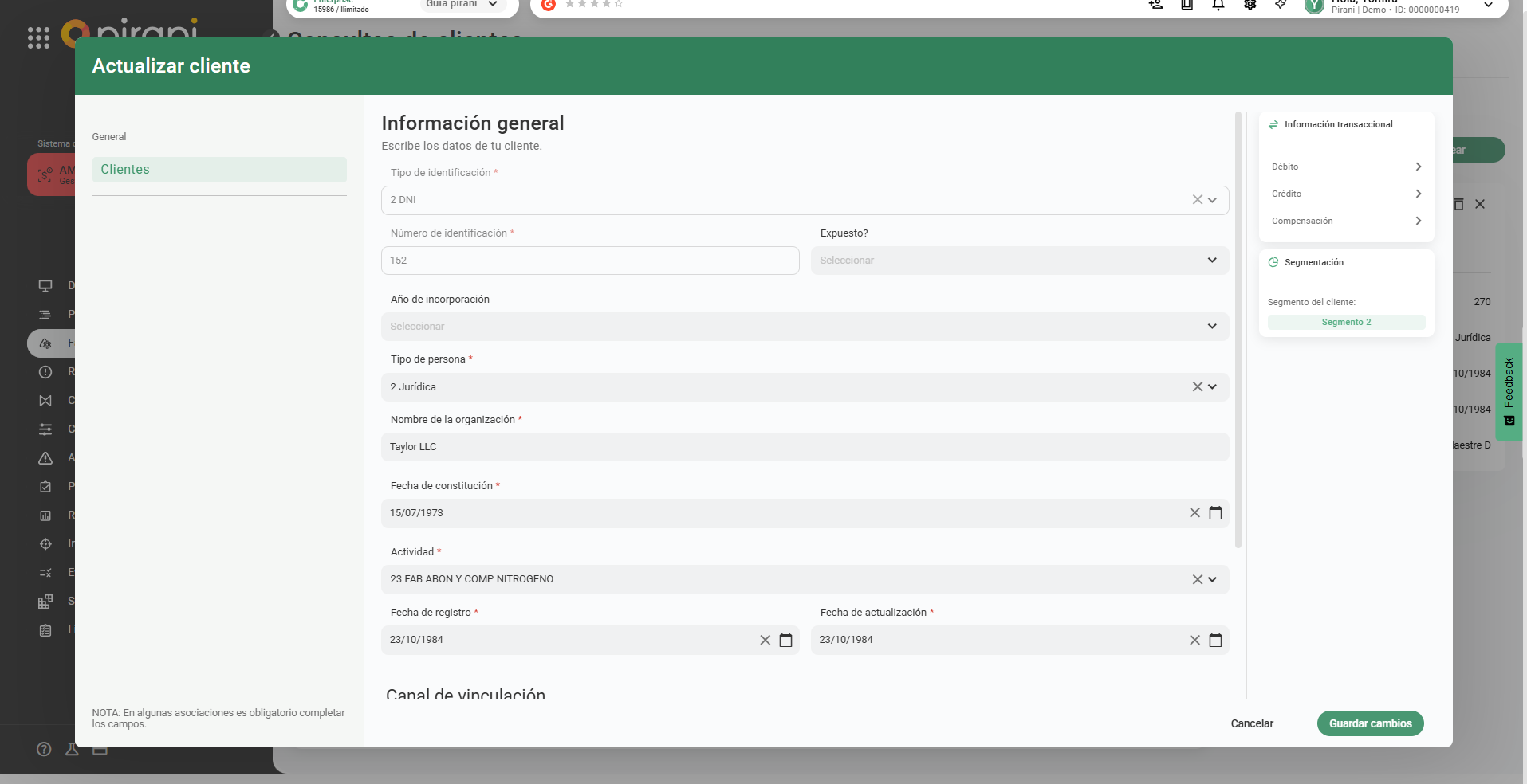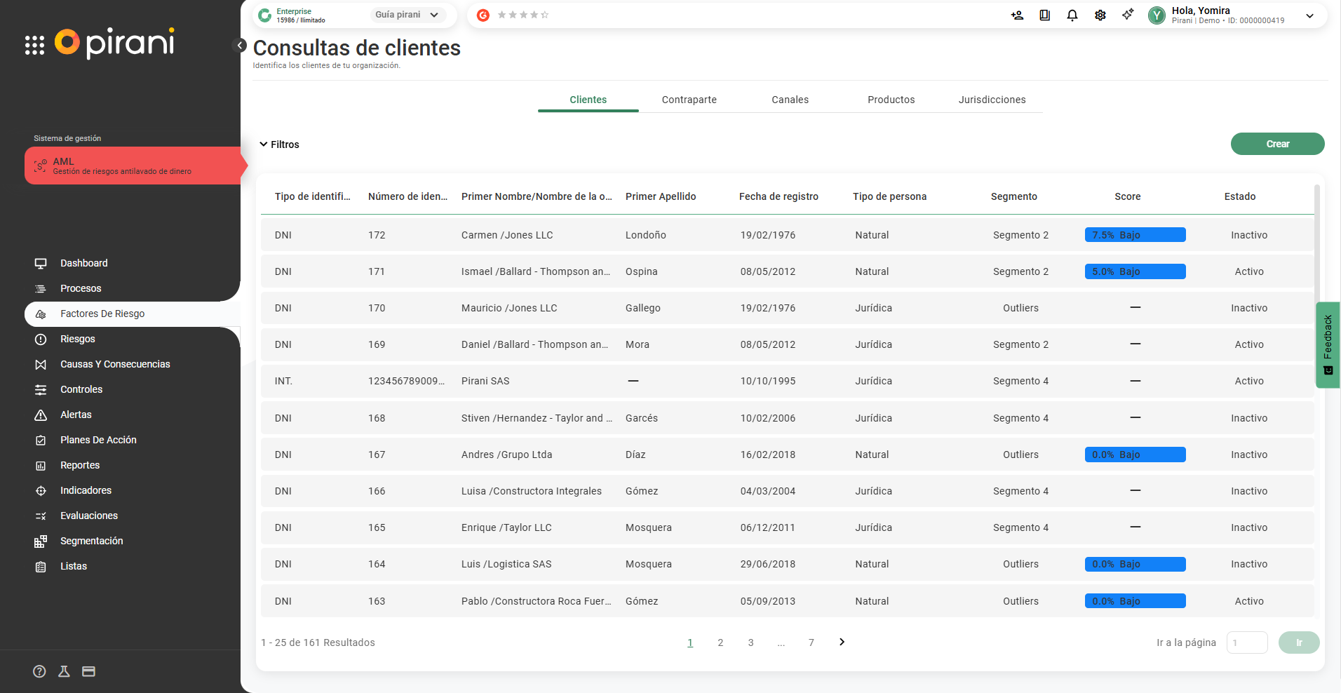 Con la nueva sección de segmentación podrás hacer prevención de lavado de activos en tu organización al agrupar y entender las características de tus factores de riesgo (clientes, contrapartes, canales, jurisdicción y productos) para así monitorear y dar seguimiento a su comportamiento y transacciones que te permitan garantizar que no están involucrados en operaciones sospechosa que promuevan el lavado de activos, financiación del terrorismo y proliferación de armas masivas.