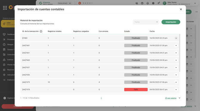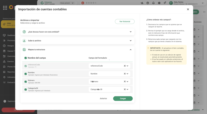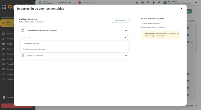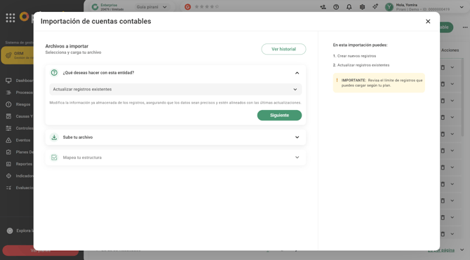 Importación de cuentas contables: aquí podrás crear nuevos registros o actualizar los ya existentes de manera sencilla y eficiente.