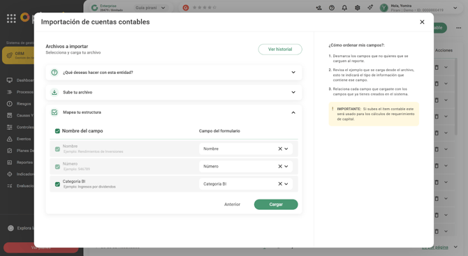 - Dentro del módulo de Cuentas Contables, encontrarás la opción de "Ítem contable". Esta opción se utilizará para calcular el requerimiento de capital.