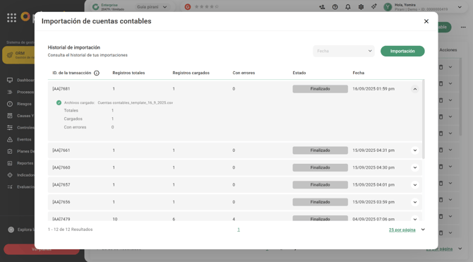 Una vez cargado el archivo te mostrará el historial de carga del sistema.