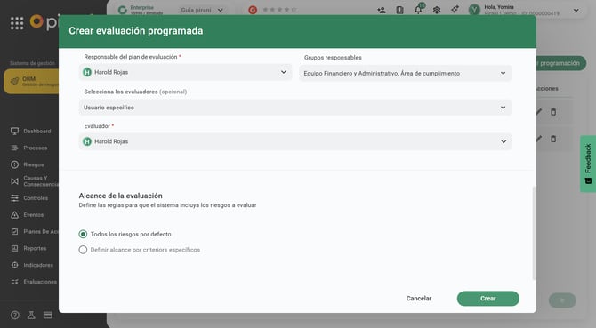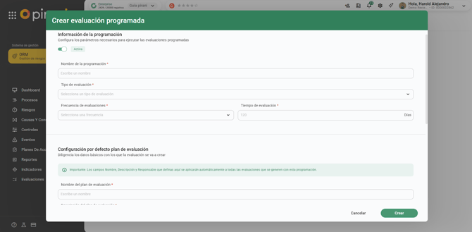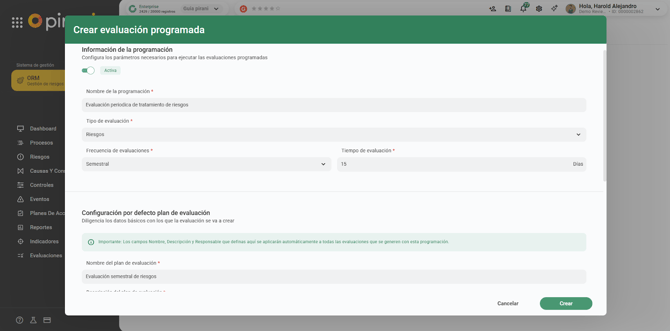 El módulo programación de evaluaciones automáticas permite crear planes de evaluación de riesgos o controles de forma automática, eliminando la necesidad de crear estos planes manualmente.