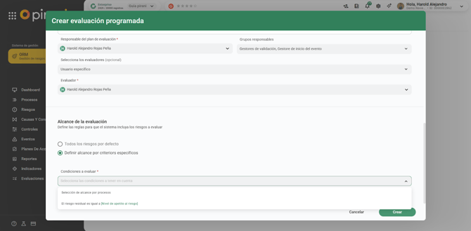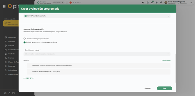 Si los procesos seleccionados tienen riesgos asociados, solo esos riesgos serán los que se evaluarán.